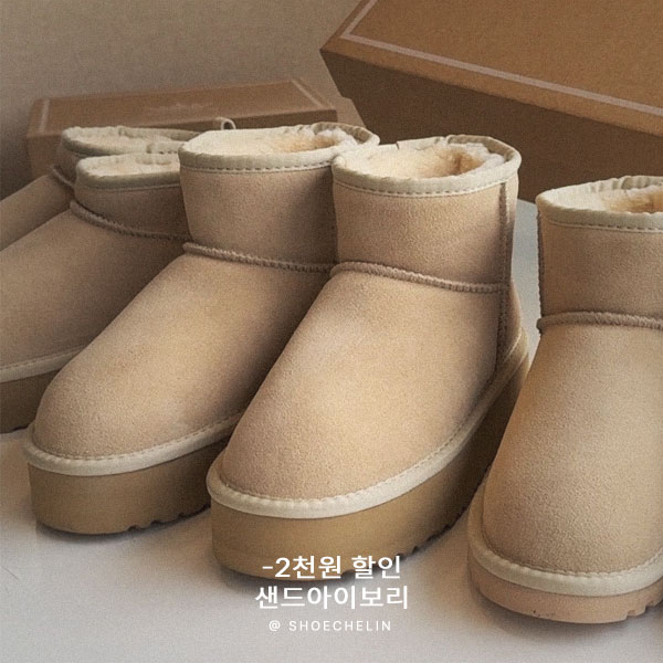[한정특가] 천연소가죽 발수코팅 플랫폼 숏 양털부츠 (4.5~5.5cm)