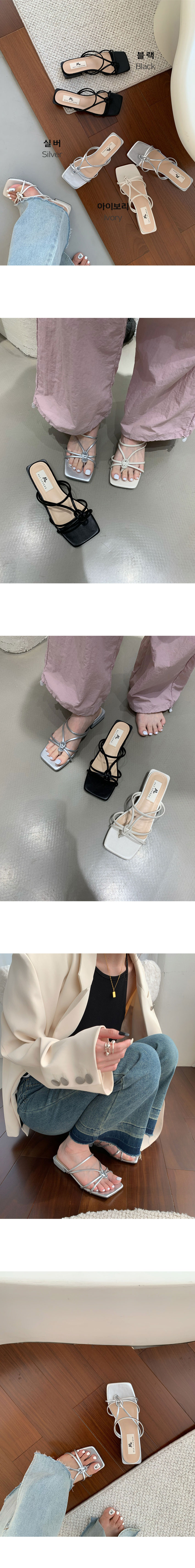 스퀘어 스트랩 꼬임 슬리퍼힐 뮬샌들