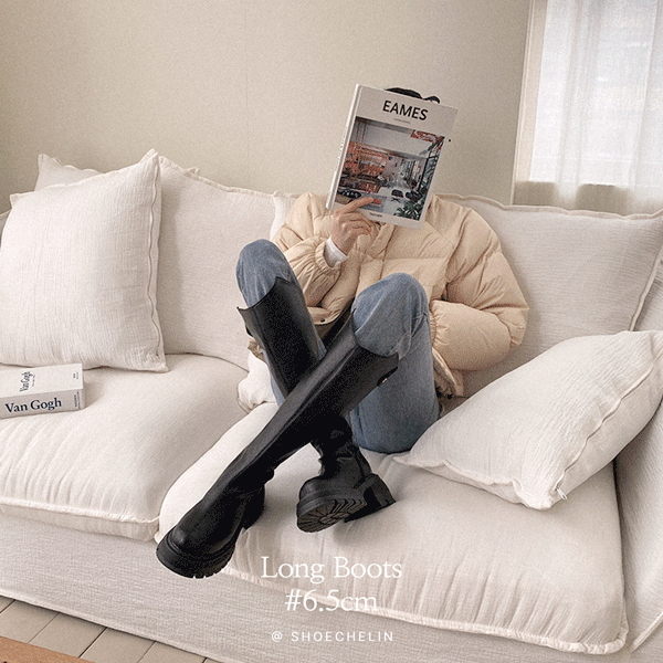 235사이즈 당일발송!버튼 절개라인 라운드 청키 통굽 롱부츠 #6.5cm