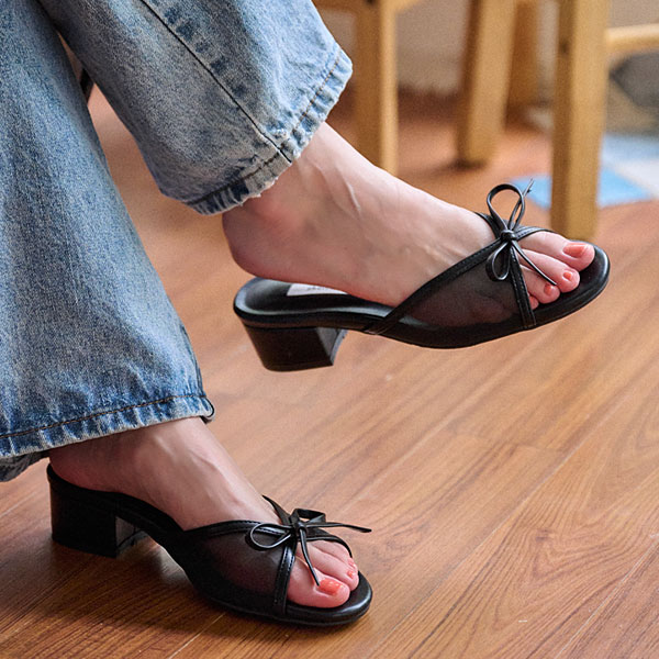 알레이 리본 메쉬 뮬 (3.5cm) #시스루샌들 - 39,800원