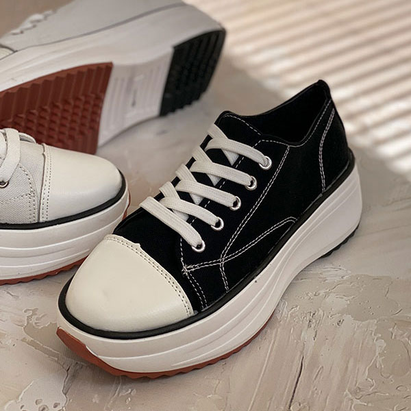 4CM 키높이 캔버스 스니커즈 #데일리 #통굽운동화 - 7,600원